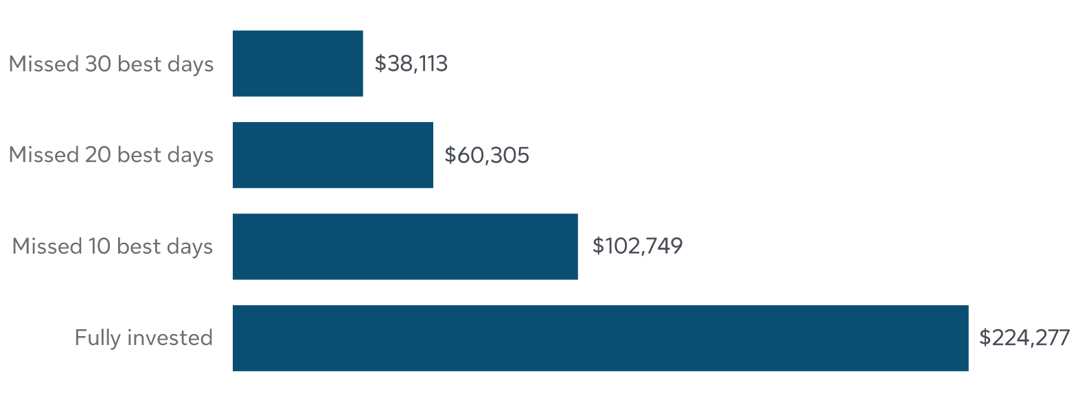 - Missed 20 best days: $60,305